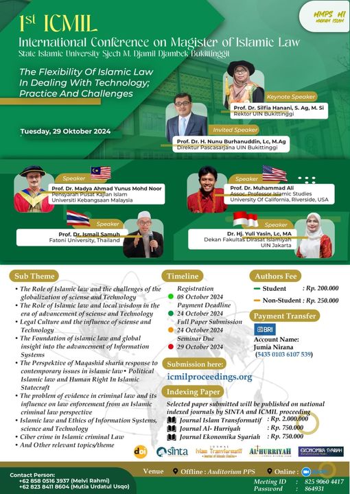 International Conference on Magister on Islamic Law (ICMIL) 2024 has been held in a hybrid manner with the theme “The Flexibility of Islamic Law in Dealing with Technology: Practive and Challenges” which presents keynote speakers and invited speakers from USA, Malaysia, Thailand and Indonesia.